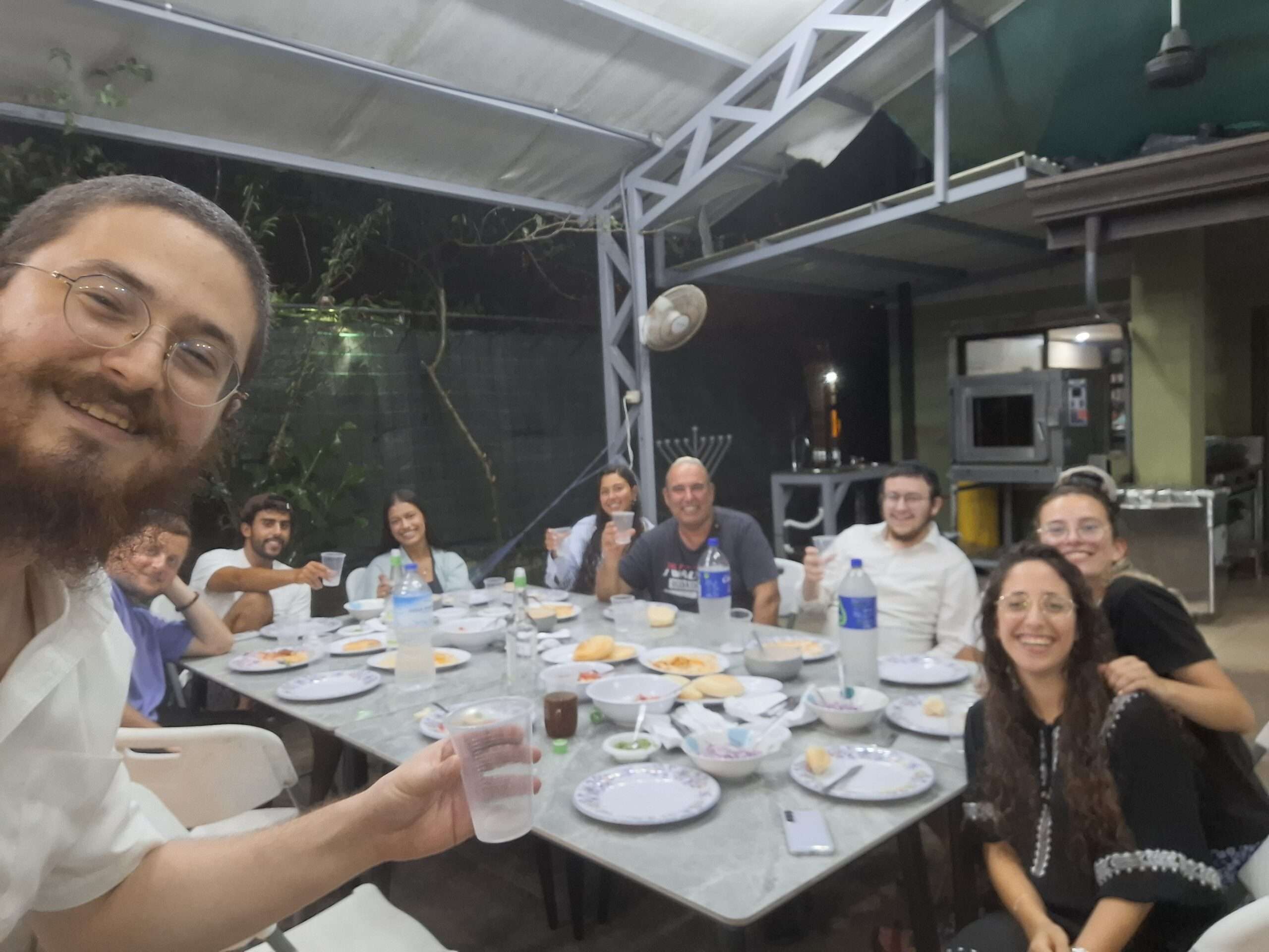 מטיילים מכל העולם יחד עם חברים מקהילת חאקו – כולם סביב שולחן אחד, באווירה כיפית ומלאת חיבור.